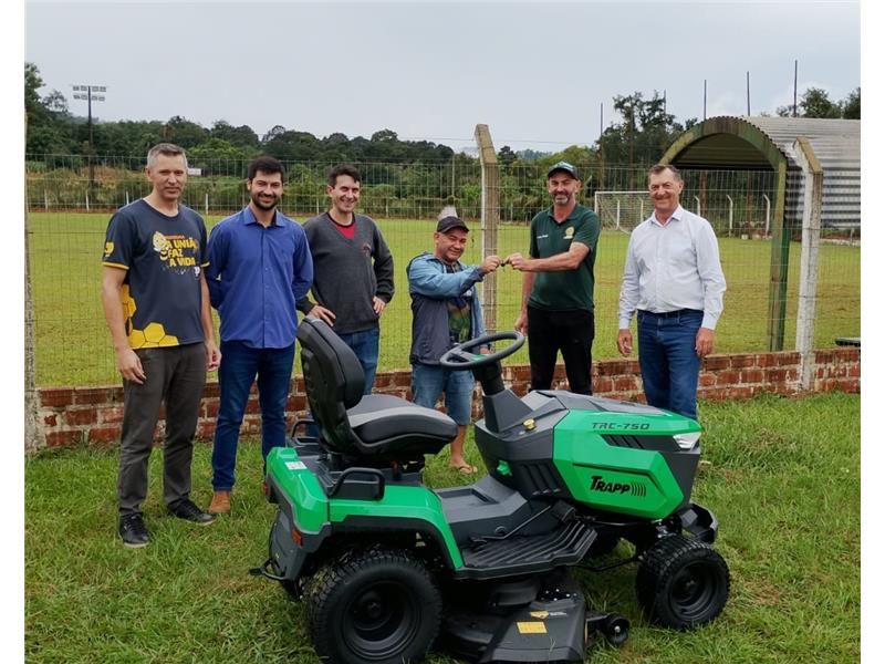 O Município de Toropi recebeu, nesta quinta-feira, 23 de abril, um trator cortador de grama, modelo TRC 750, destinado à Secretaria Municipal de Educação. O equipamento será utilizado na manutenção do Ginásio Municipal de Esportes e de outras áreas do município, conforme a necessidade.